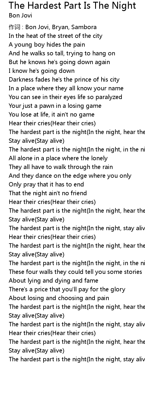 | The hardest part is the night(In the night, stay alive in the night) | |