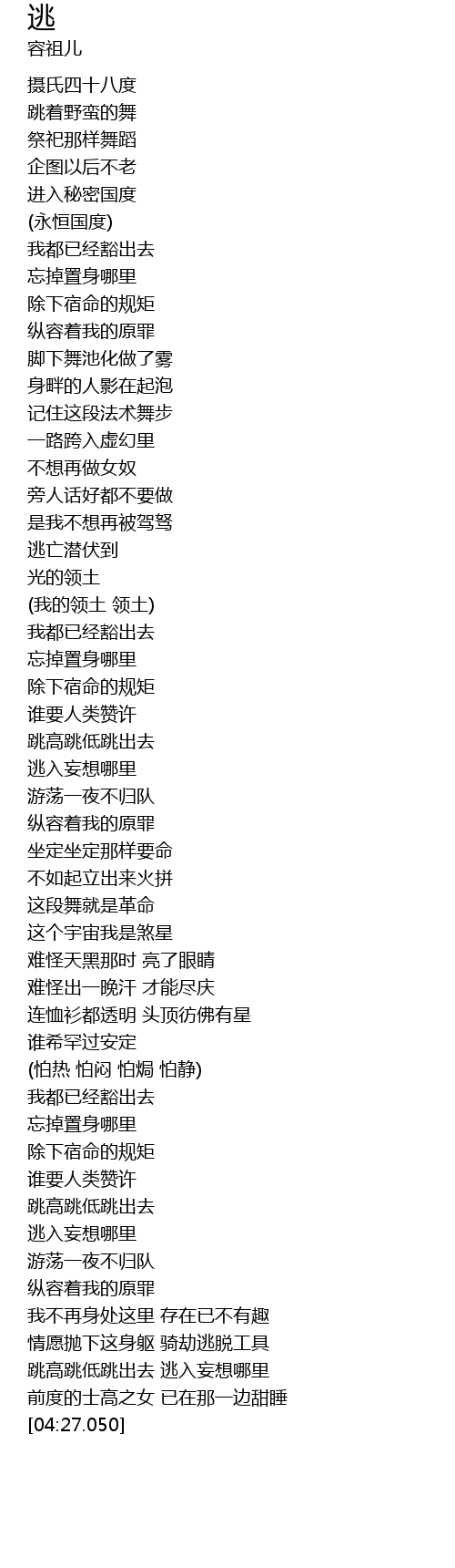 | [04:14.670] | 跳高跳低跳出去 逃入妄想哪里 |