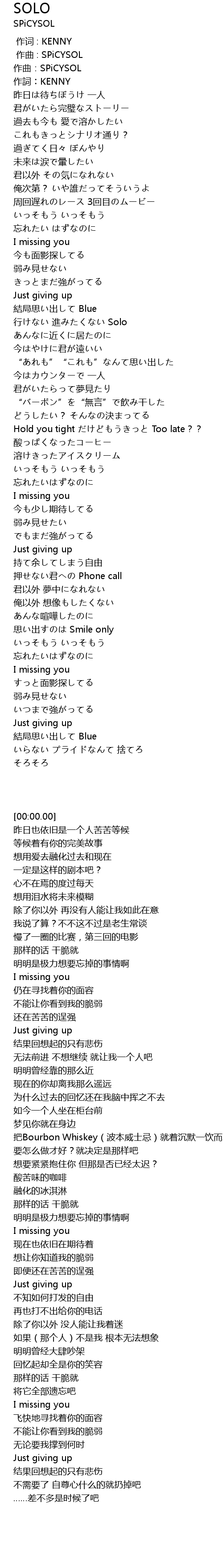 | [00:00.00] | zuo qu: SPiCYSOL |