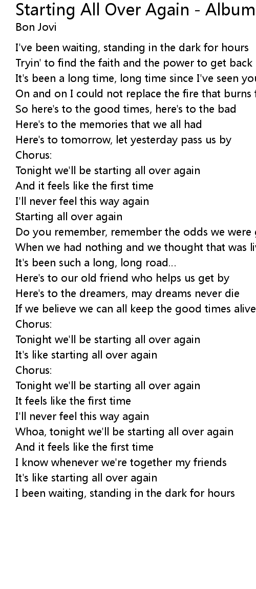 | Whoa, tonight we' ll be starting all over again | |