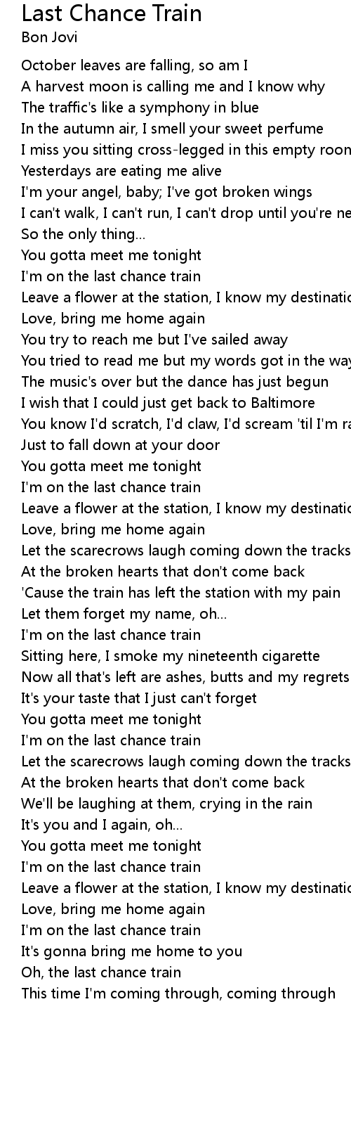 Oh, the last chance train |
