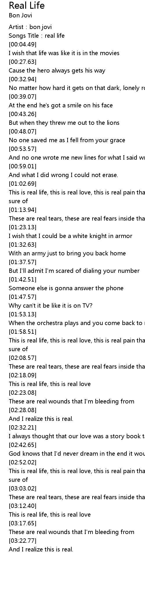 | [02:53.96] | This is real life, this is real love, this is real pain that much I' m sure of |