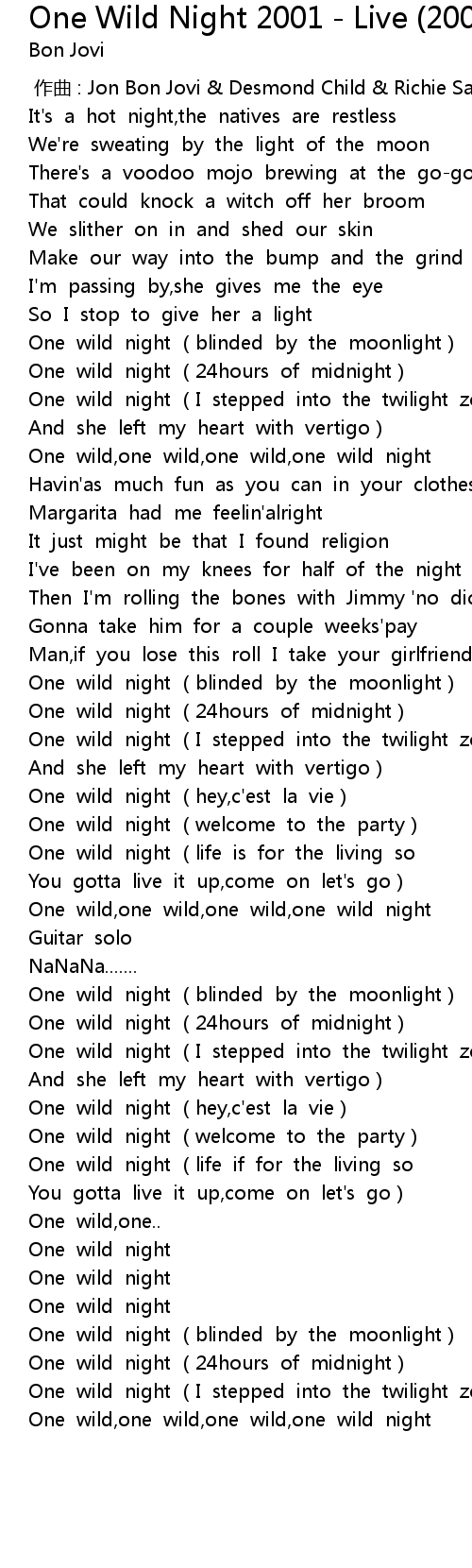 | [02:44.97] | One wild night (hey,c'est la vie) |