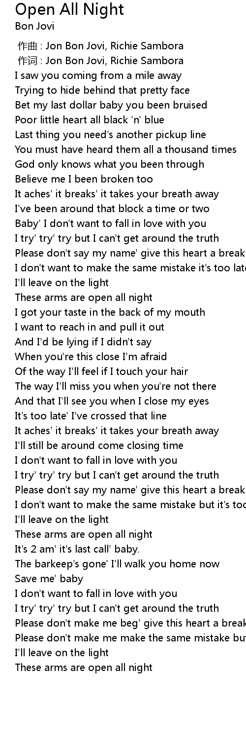 | [00:01.00] | zuò cí : Jon Bon Jovi, Richie Sambora |
