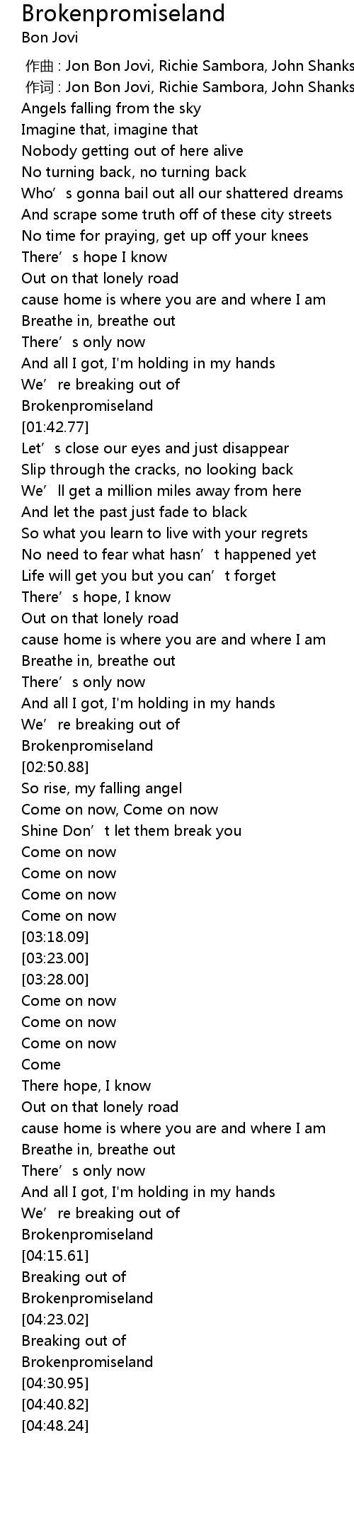 | [01:38.05] | Brokenpromiseland |