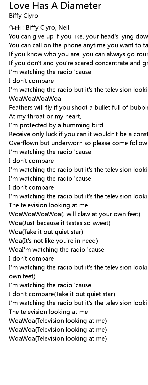 | I' m watching the radio but it' s the television looking at me I will claw at your own feet | |