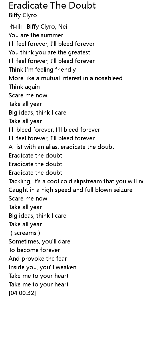 | [00:32.65] | I'll feel forever, I'll bleed forever |