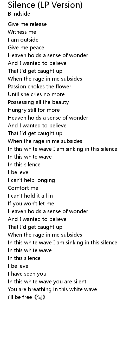 | [03:20.20] | In this white wave I am sinking in this silence |
