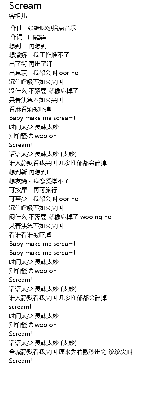 | [03:54.96] | 全城静默看我尖叫 原来为着数秒出窍 统统尖叫 |