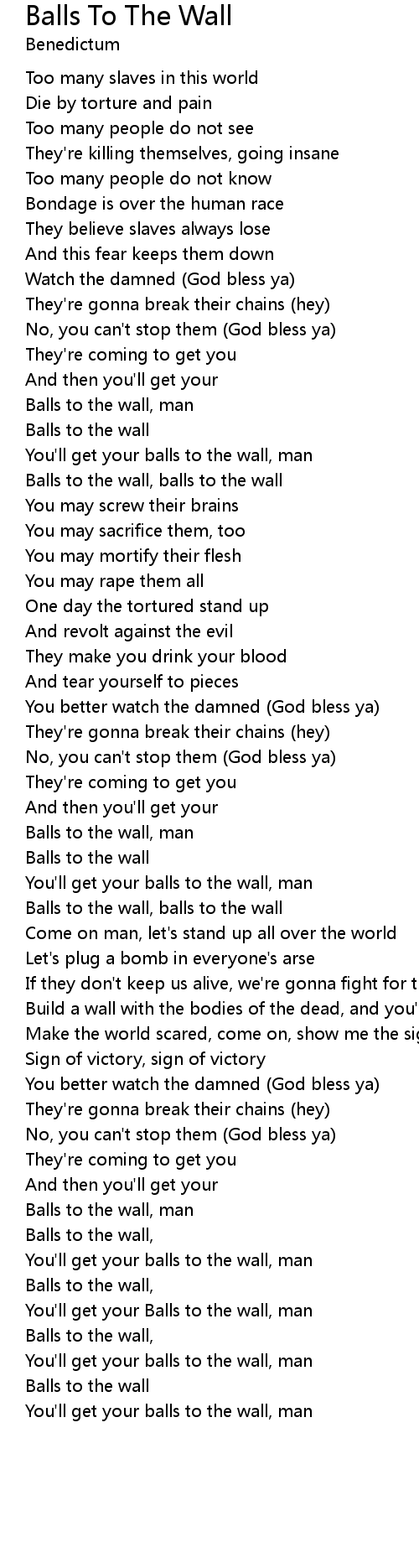 Balls to the wall, balls to the wall |