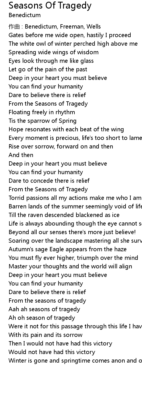 | Song | Seasons Of Tragedy |