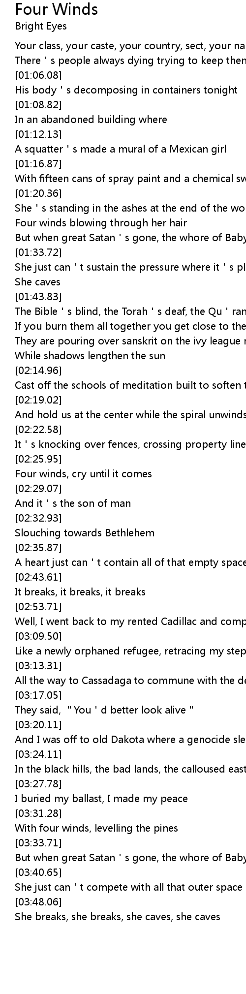 | [02:33.50] | Slouching towards Bethlehem |