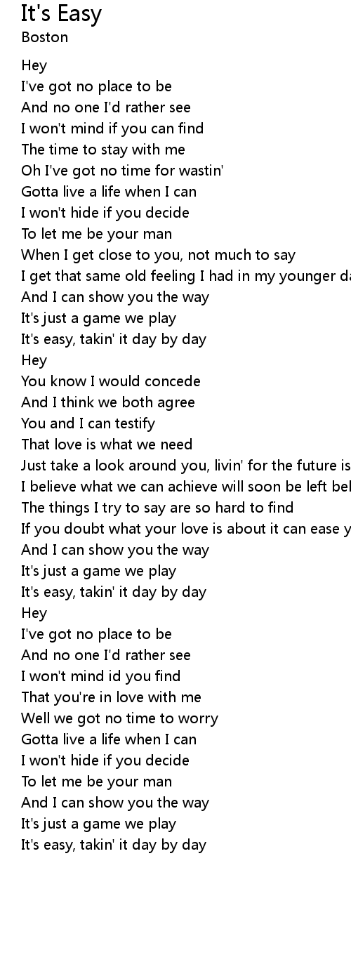It's easy, takin' it day by day |