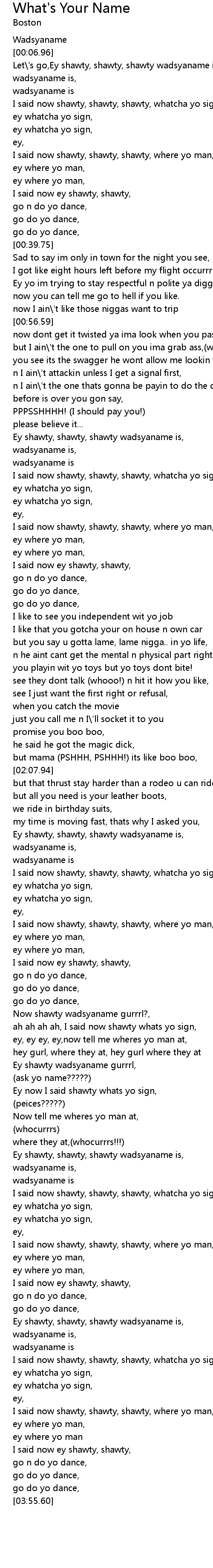 | [03:06.23] | Ey shawty, shawty, shawty wadsyaname is, |