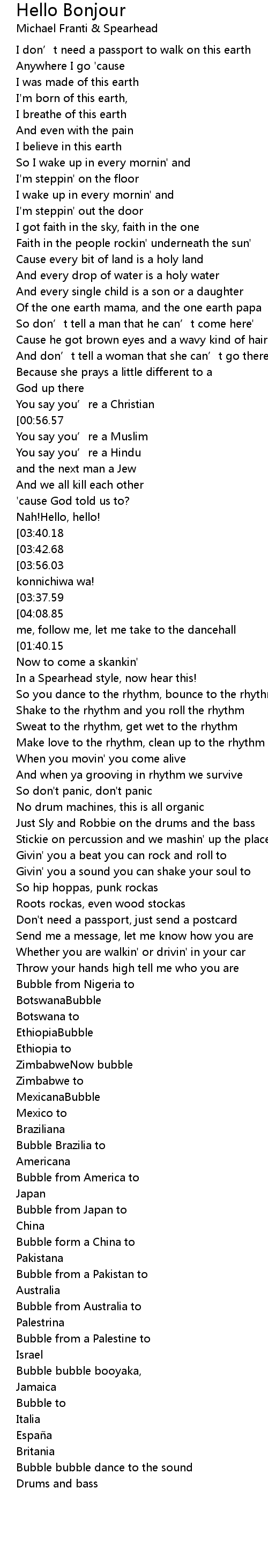 | [00:13.01] | I don’t need a passport to walk on this earth |