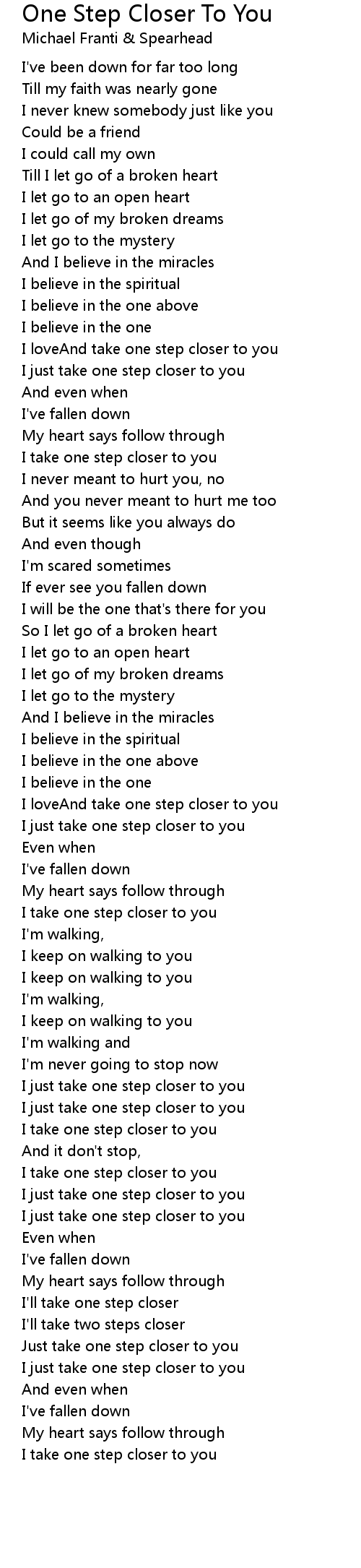 Just take one step closer to you |