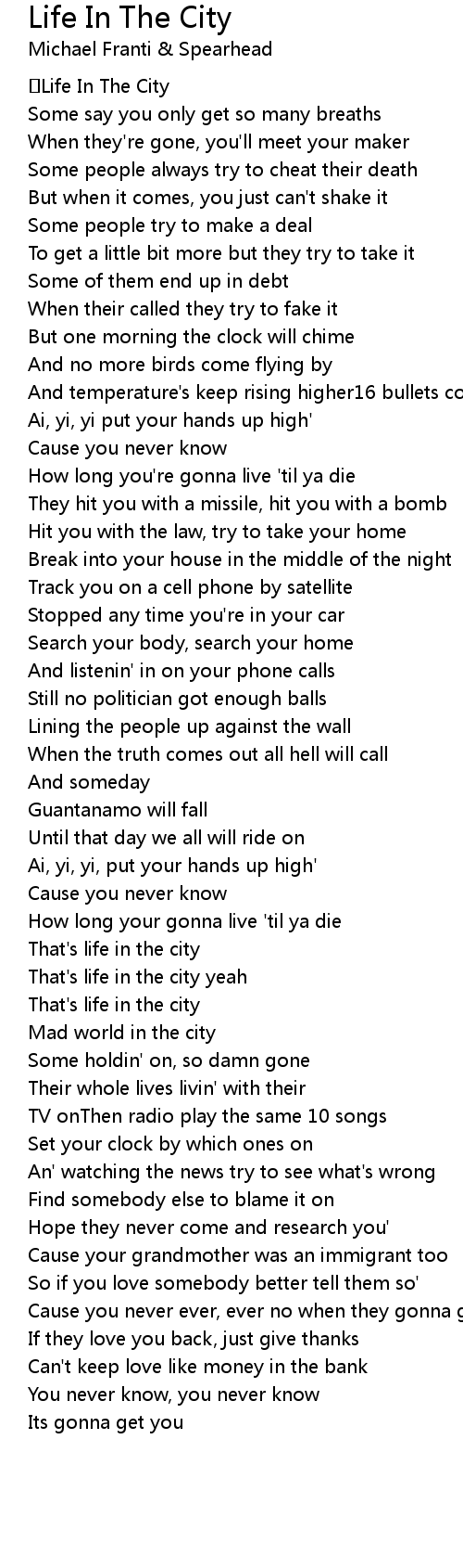 That's life in the city yeah |