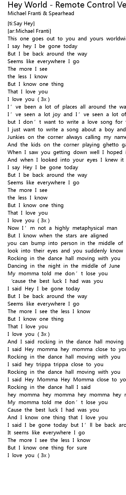 | [00:10.18] | This one goes out to you and yours worldwide |