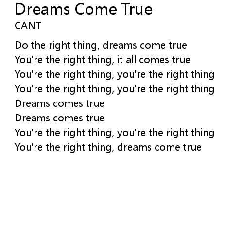 | You're the right thing, dreams come true |