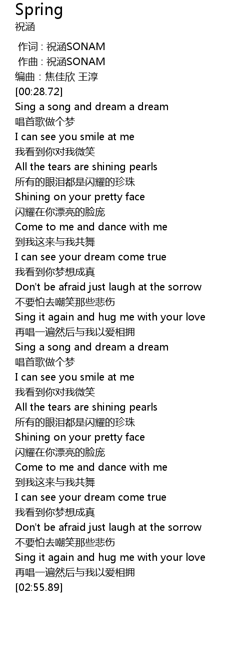 | [00:28.72] | Sing a song and dream a dream |