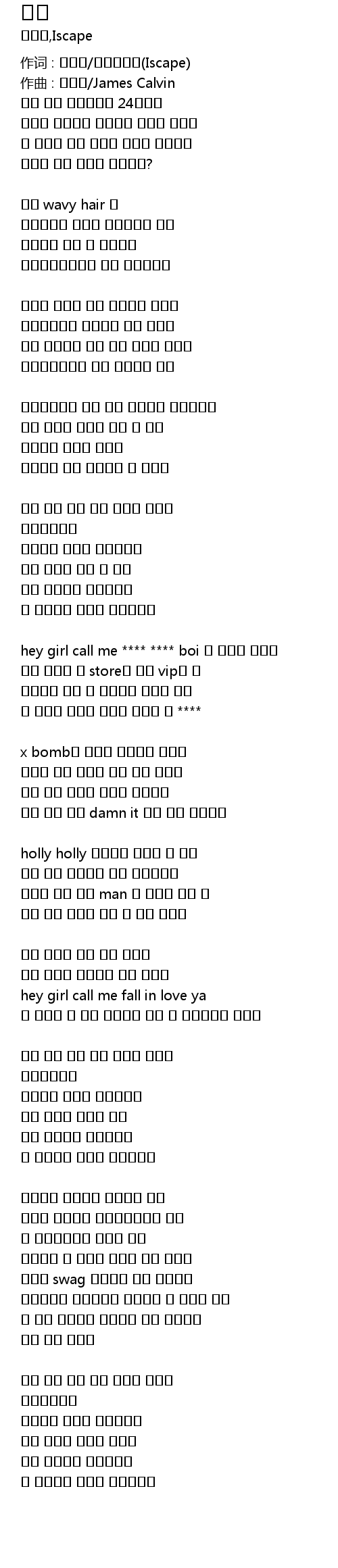 hey girl call me **** **** boi 딴 눈빛은 안걸쳐 |