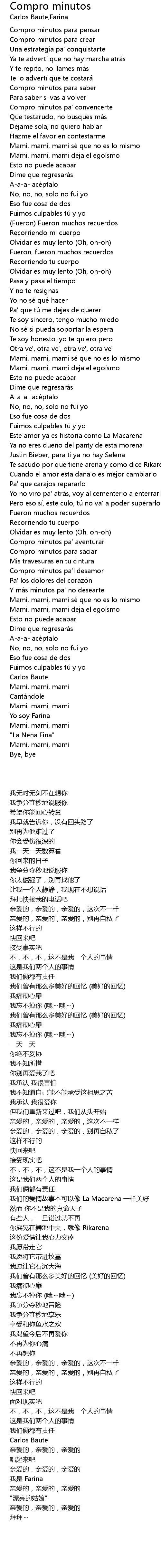 | [02:51.32] | Y má s minutos pa' no desearte |