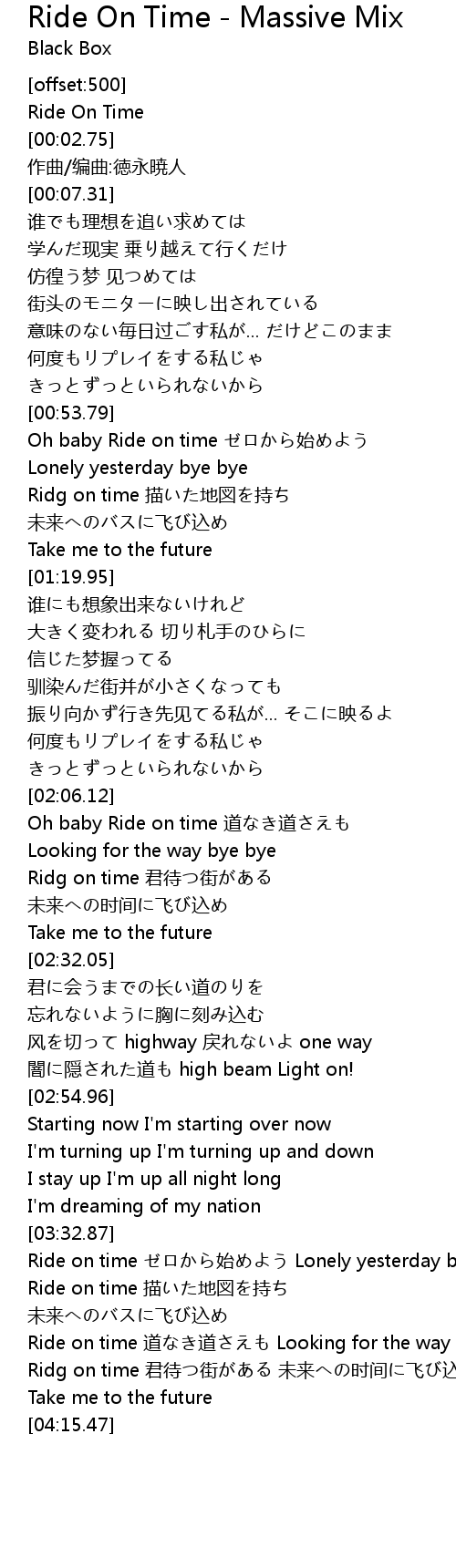 | [00:01.30] | Ride On Time |