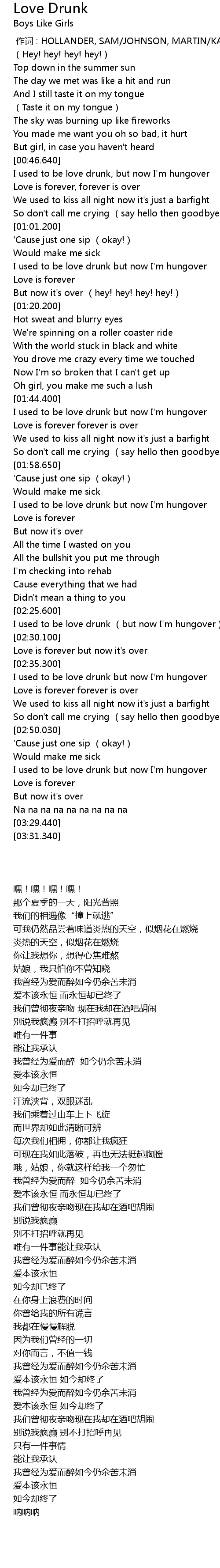 | [02:36.600] | I used to be love drunk but now I'm hungover |