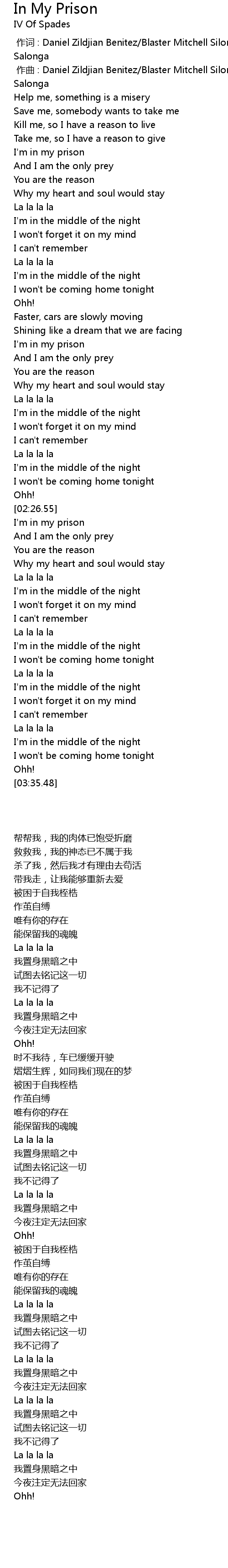 | [02:50.75] | I'm in my prison |