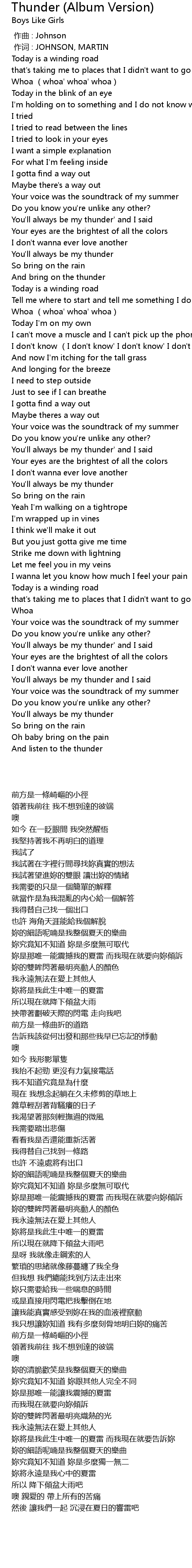| [00:48.480] | You' ll always be my thunder' and I said |