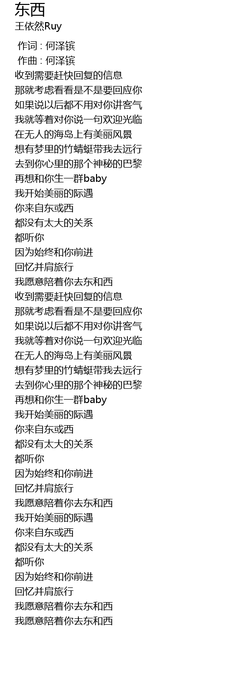 | [02:00.696] | 我愿意陪着你去东和西 |