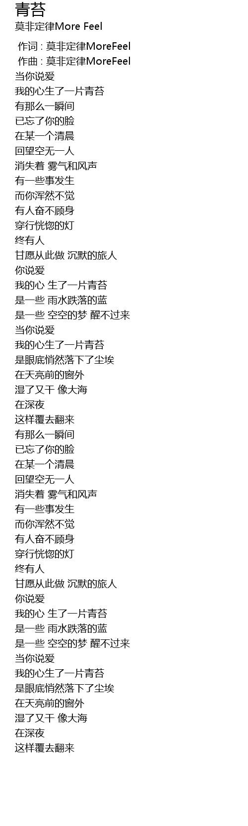 | [00:00.000] | 作词 : 莫非定律MoreFeel |