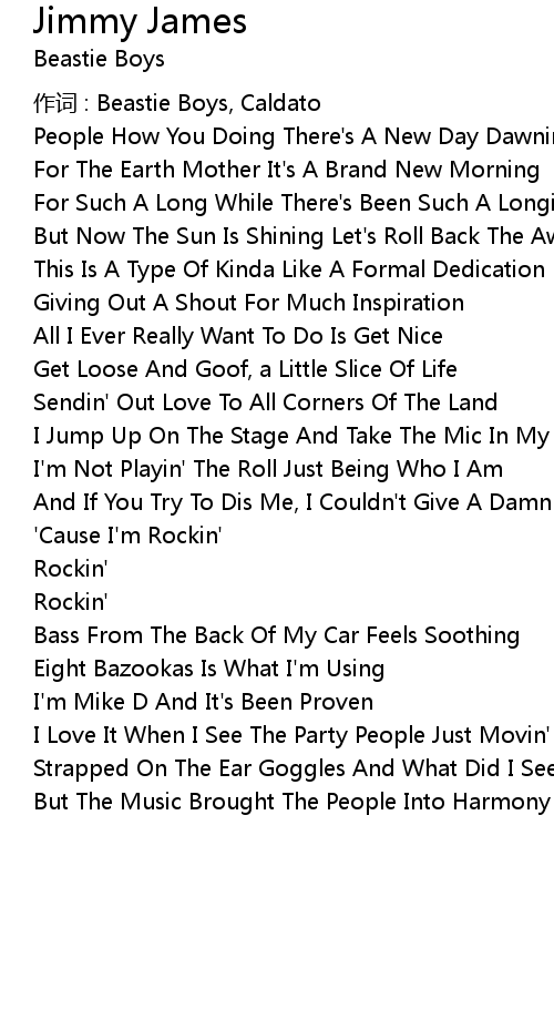 | 作词 : Beastie Boys, Caldato | |