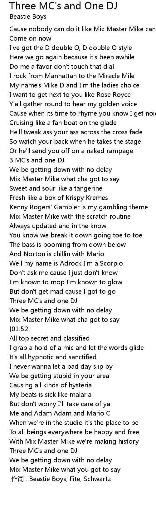 | [00:00.00] | 作词 : Beastie Boys, Fite, Schwartz |