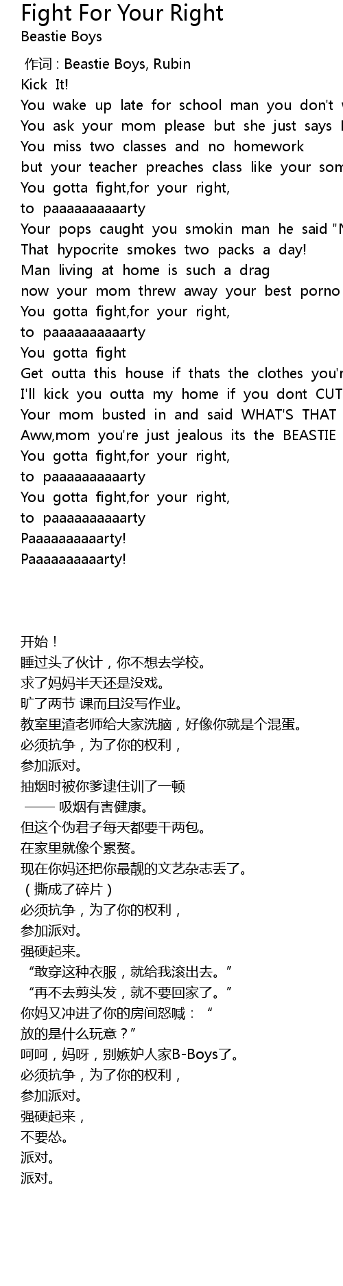| [02:23.427] | Aww, mom you' re just jealous its the BEASTIE BOYS!!! |