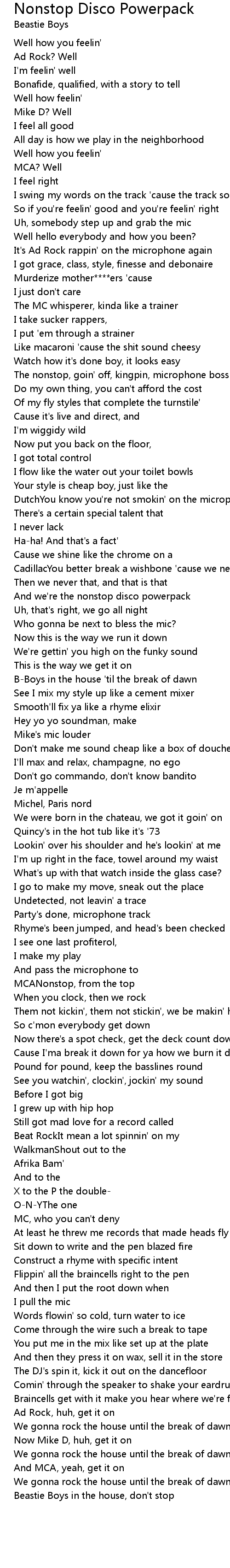 Beastie Boys in the house, don't stop |