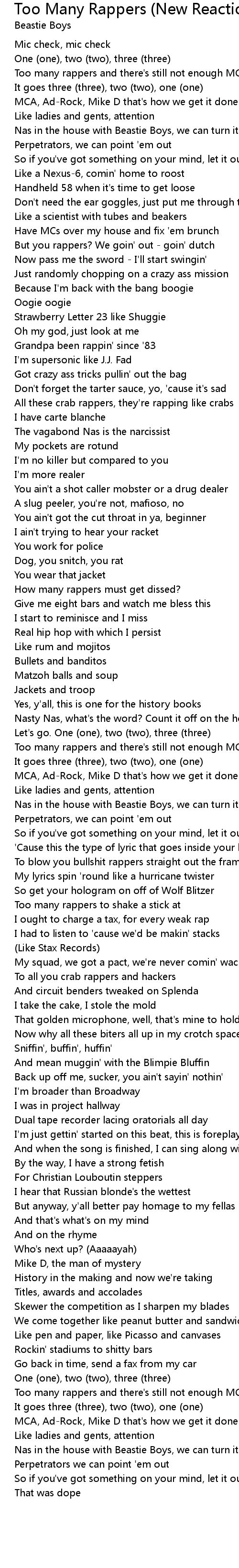 Too many rappers and there's still not enough MC's |