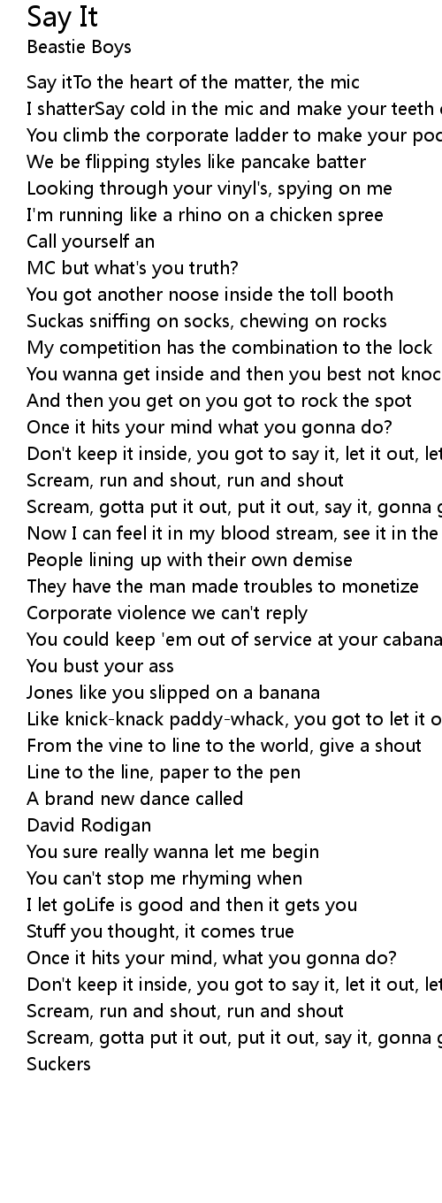 Don't keep it inside, you got to say it, let it out, let it out |