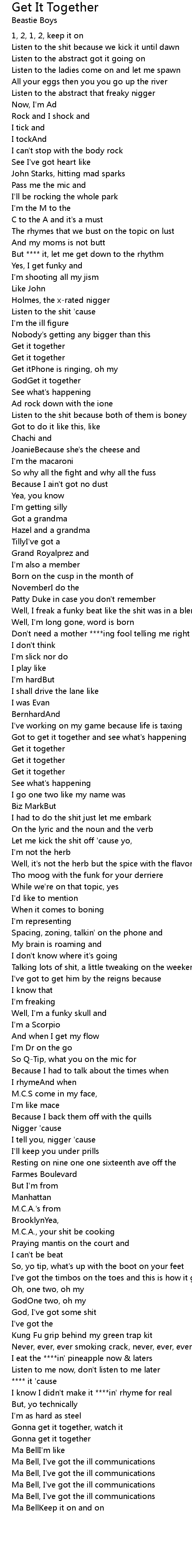 I tell you, nigger 'cause |