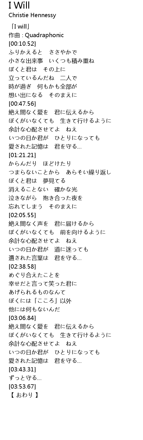 | [00:02.52] | 「I will」 |
