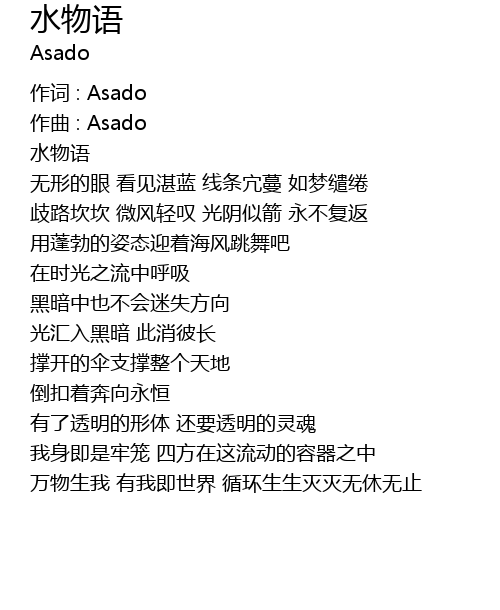 | 作词 : Asado | |