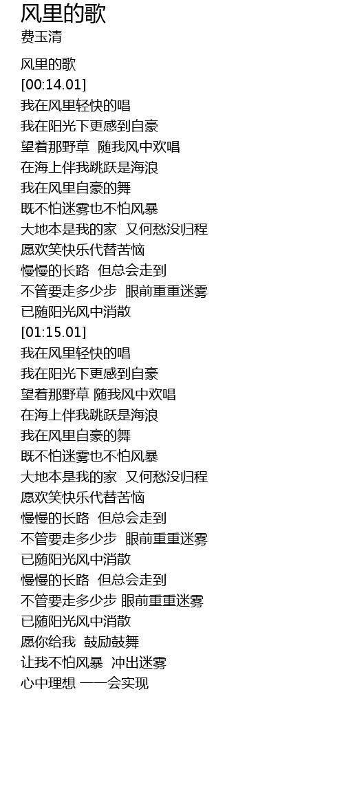 | [01:41.31] | 我在风里轻快的唱 |
