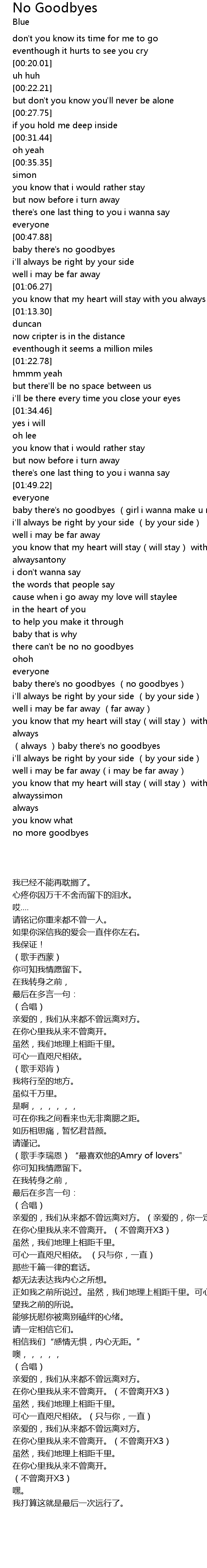 | [03:18.33] | always baby there' s no goodbyes |