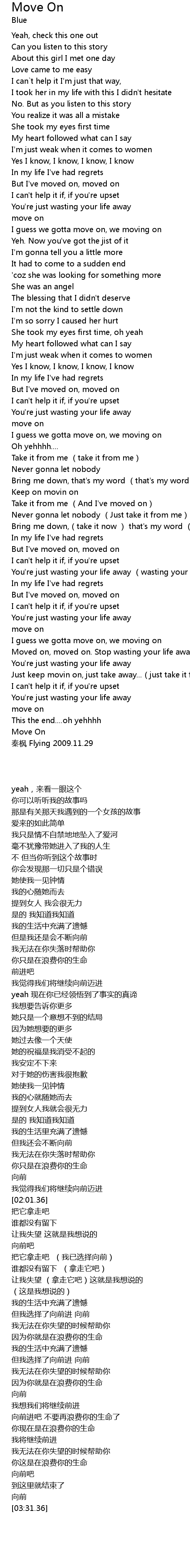 | [03:31.36] | 秦枫 Flying 2009.11.29 |