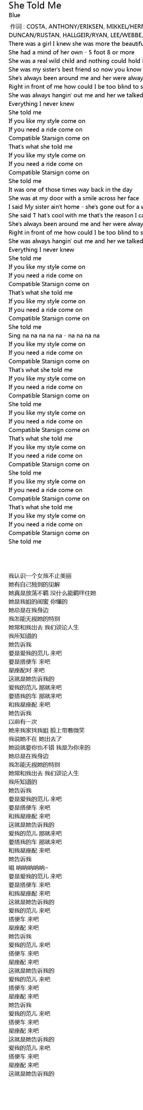 | [00:15.480] | She had a mind of her own 5 foot 8 or more |