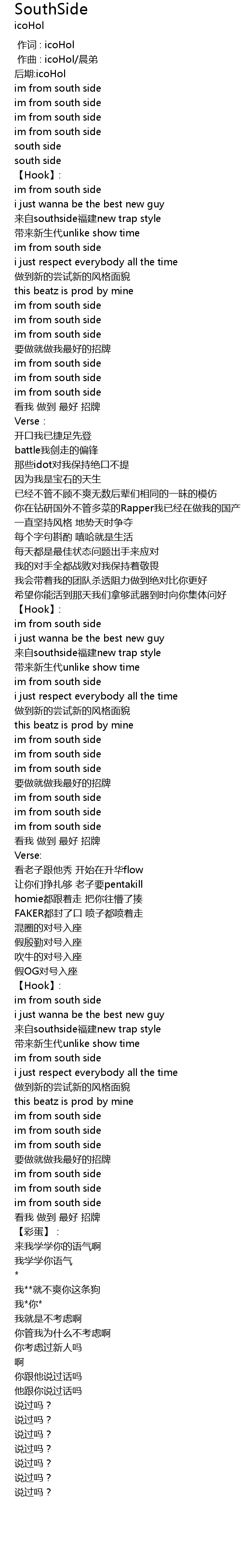 | [02:10.097] | 来自southside福建new trap style |