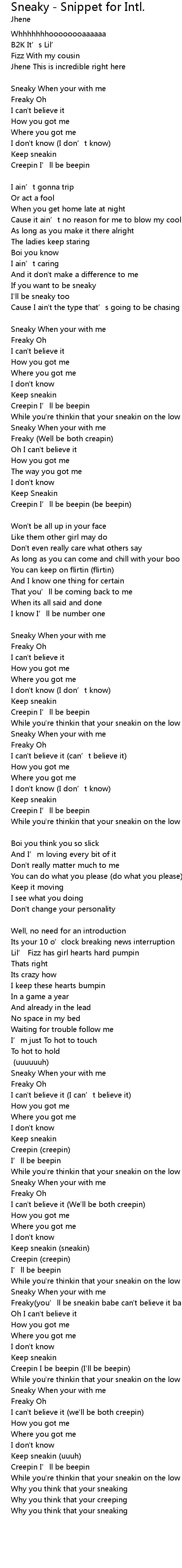 | Freaky you' ll be sneakin babe can' t believe it babe how you sneaking baby | |