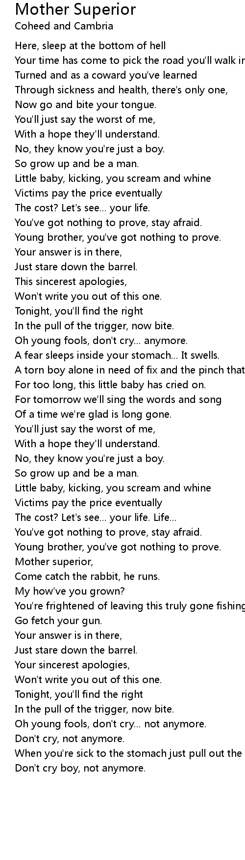 Oh young fools, don't cry... anymore. |