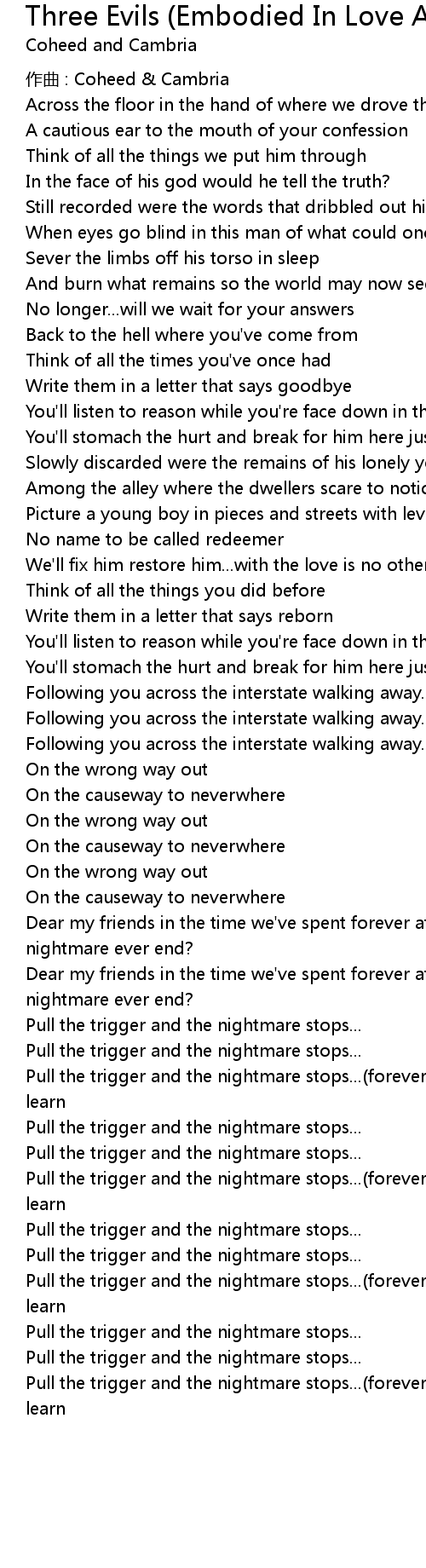 | Song | Three Evils (Embodied In Love And Shadow) |