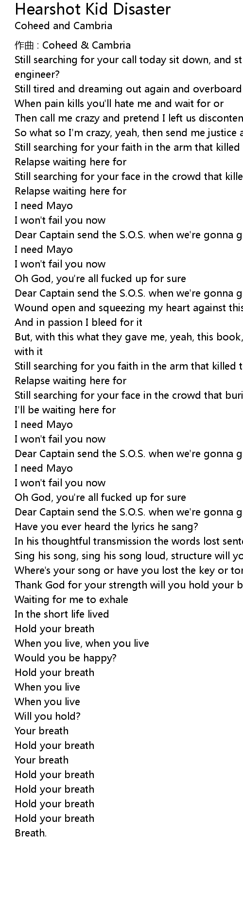| Dear Captain send the S.O.S. when we're gonna go down | |